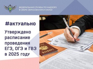 Расписание ЕГЭ, ОГЭ и ГВЭ на 2025 год уже утверждено чт, 12.12.2024 - 08:10 ГИА ЕГЭ ОГЭ Подробнее о Расписание ЕГЭ, ОГЭ и ГВЭ на 2025 год уже утверждено