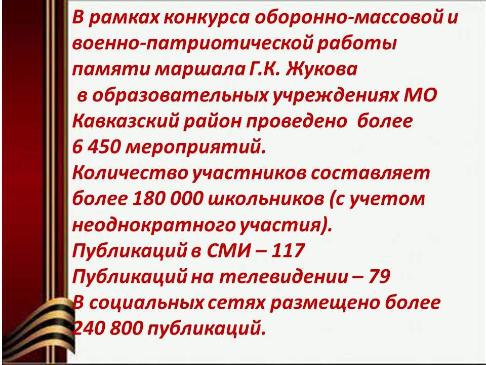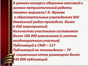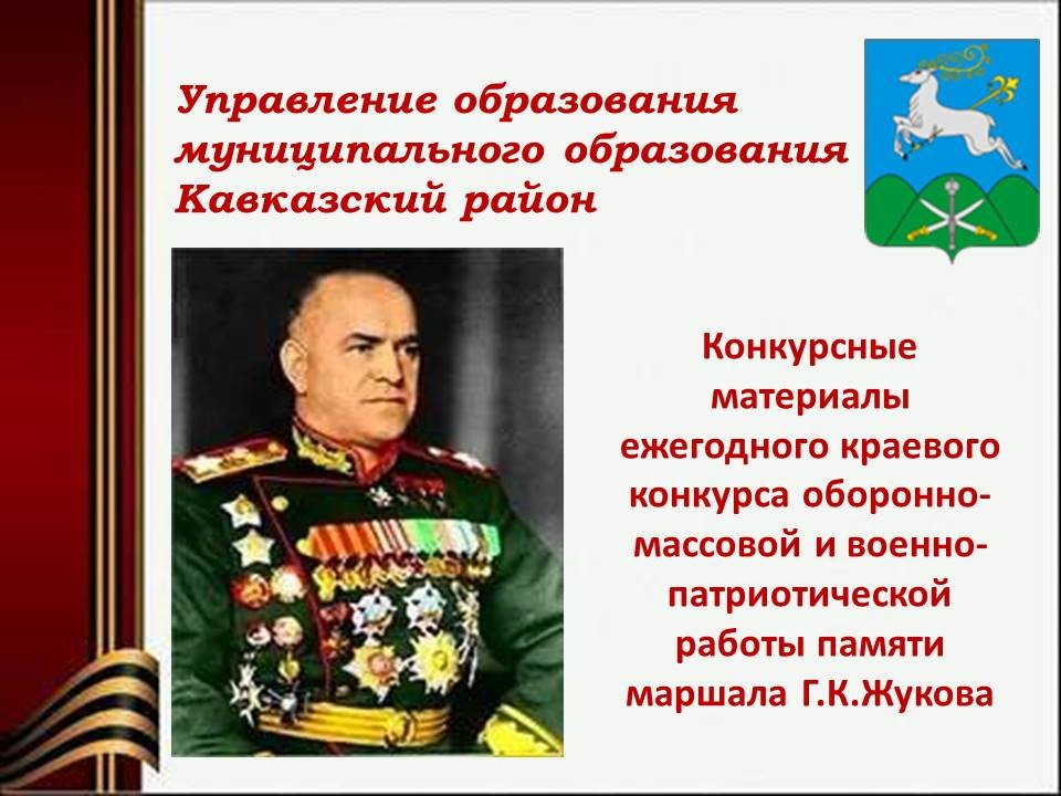 Презентация "Конкурсные материалы ежегодного краевого конкурса оборонно-массовой и военно-патриотической работы памяти маршала Г.К. Жукова"