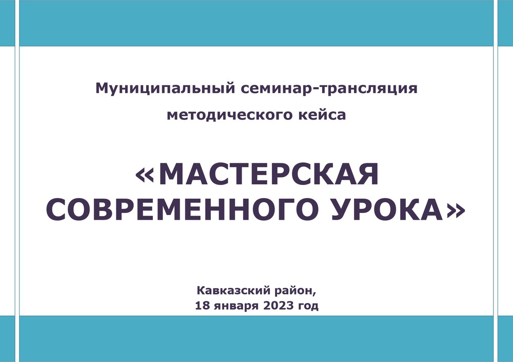 18 января 2023 года на базе МБОУ ОСОШ №1 города Кропоткин состоялся муниципальный семинар – трансляция методического кейса «Мастерская современного урока», участниками которого стали педагоги образовательных организаций Кавказского района.