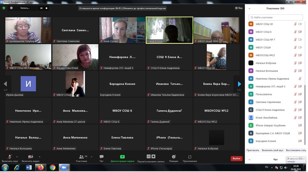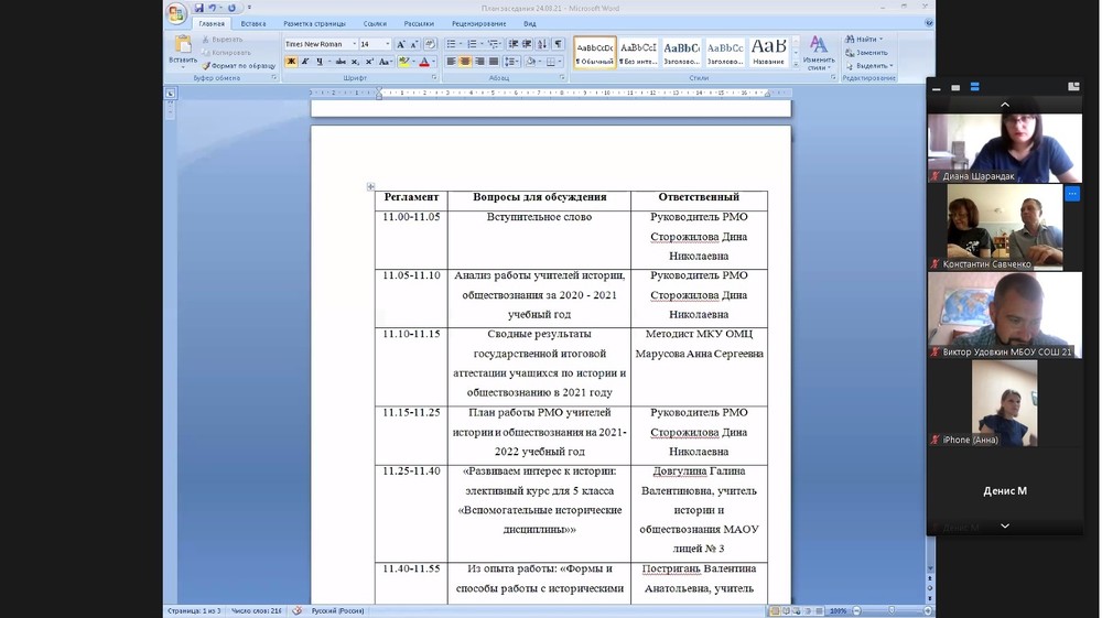 В соответствии с планом работы МКУ «Организационно- методический центр» в период с 16 по 27 августа 2021 года были проведены заседания 20 районных методических объединений педагогических работников (далее РМО) в дистанционном режиме с использованием платформы Zoom.