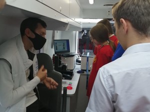 Гости ознакомились с оснащением мобильного технопарка «Кванториум». Побывали в специально оборудованных классах, где дети будут заниматься робототехникой, 3D моделированием, IT-технологиями.