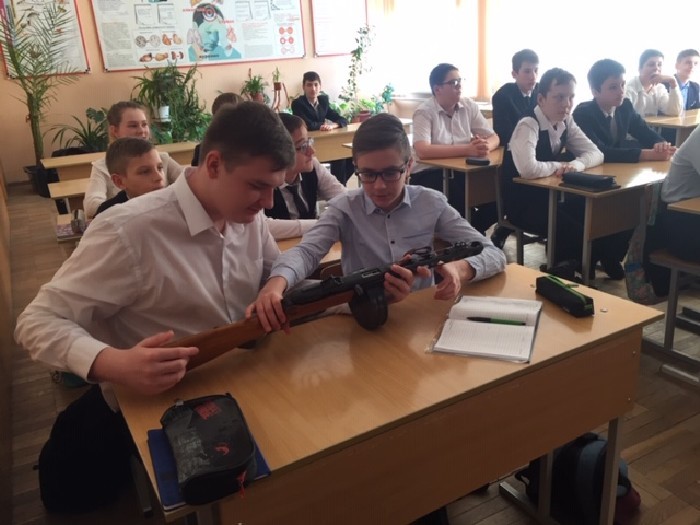 Лицеистам была предложена интерактивная программа с макетами оружия времен Великой Отечественной войны (из обменного фонда музея). Подросткам рассказали о создании пистолета-пулемета Судаева, а также о наиболее распространенной в годы Великой Отечественной ручной противотанковой гранате (РПГ-40) и ручной гранате Дьяконова (РГД-33).