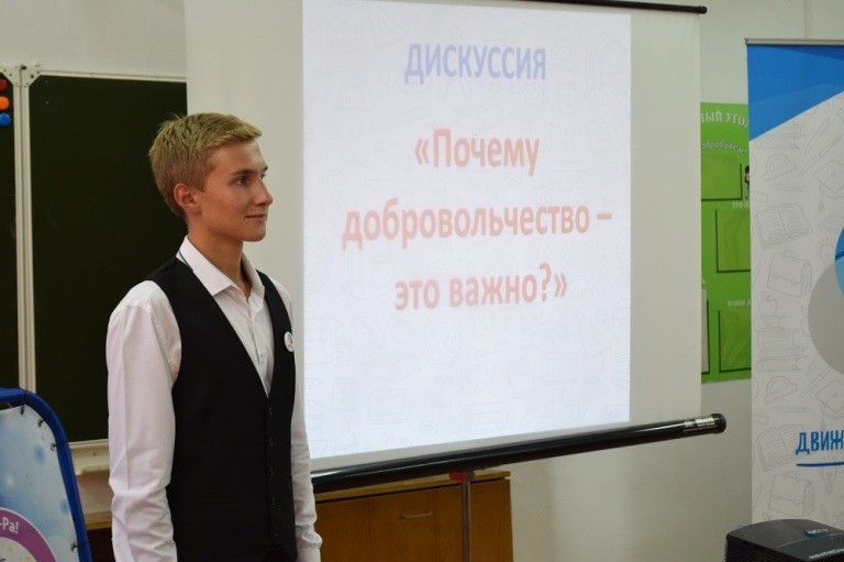Тематика «Классного собрания», которое подготовил учащийся школы, лидер школьного (ученического) самоуправления, член Всероссийской ассоциации «Российское движение школьников» Глуховской Александр и члены инициативной группы «Акцент» детской общественной организации «Содружество», была посвящена Году добровольчества и деятельности «РДШ». Мероприятие проводилось в интерактивной форме с использованием фото- и видео материалов по данной тематике. Родителям очень понравился формат проведения собрания, а также информационная часть мероприятия.